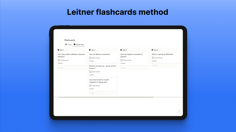 Flashcards: Master key concepts with the proven "shoebox system", an efficient method for spaced repetition and long-term memorization. Ace those exams with confidence!